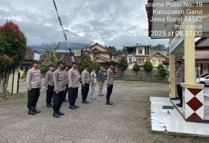 Polsek Bayongbong Polres Garut Polda Jabar melaksanakan apel pagi dalam rangka pengecekan kesiapan personil Polsek Bayongbong dan Polsubsektor Cigedug dalam melaksanakan tugas yang di pimpin langsung oleh Kapolsek Bayongbong AKP Gopar Suryadi Mulya, S.H. Rabu (25/06/2025)